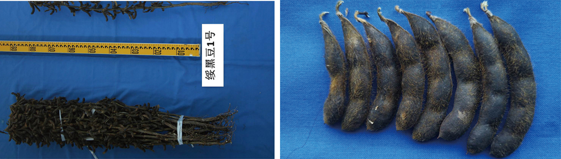 特种品种(黑色大豆品种)。白花尖叶,棕色茸毛,亚有限结荚习性。株高90厘米左右,有分枝,荚弯镰形,成熟时呈黑色。子粒圆形,种皮黑色,无光泽,种脐黑色,百粒重22.9克左右。二年平均品质分析结果:蛋白质含量41.03%,脂肪含量19.12%。二年抗病接种鉴定结果:中抗灰斑病。在适应区出苗至成熟生育日数120天左右,需≥10°C活动积温2450°C左右。